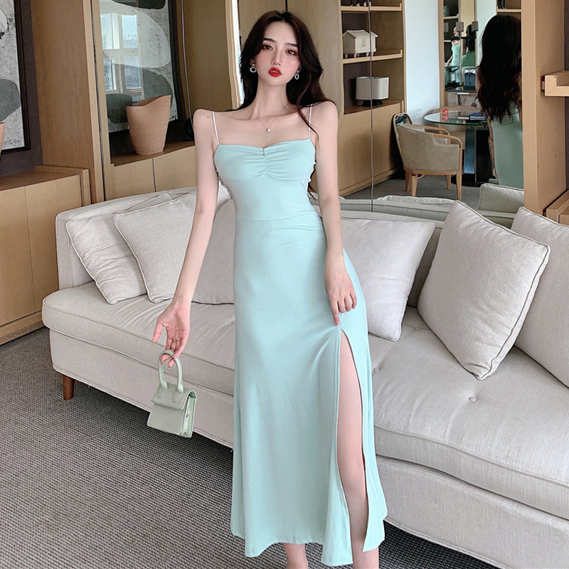 Slim Slit Tube Long Dress Summer Sexy Pint Party Beach Dresses Women's Clothing